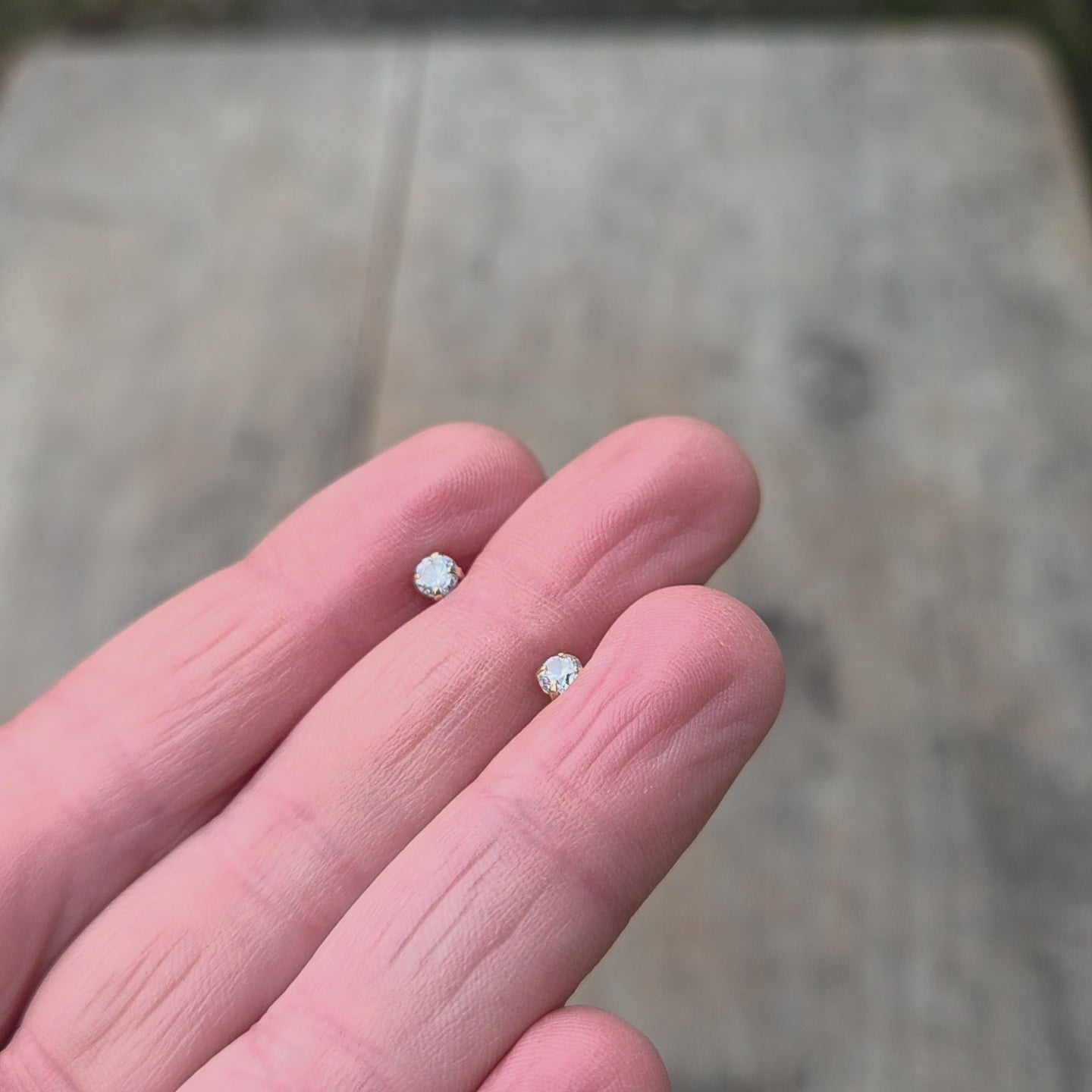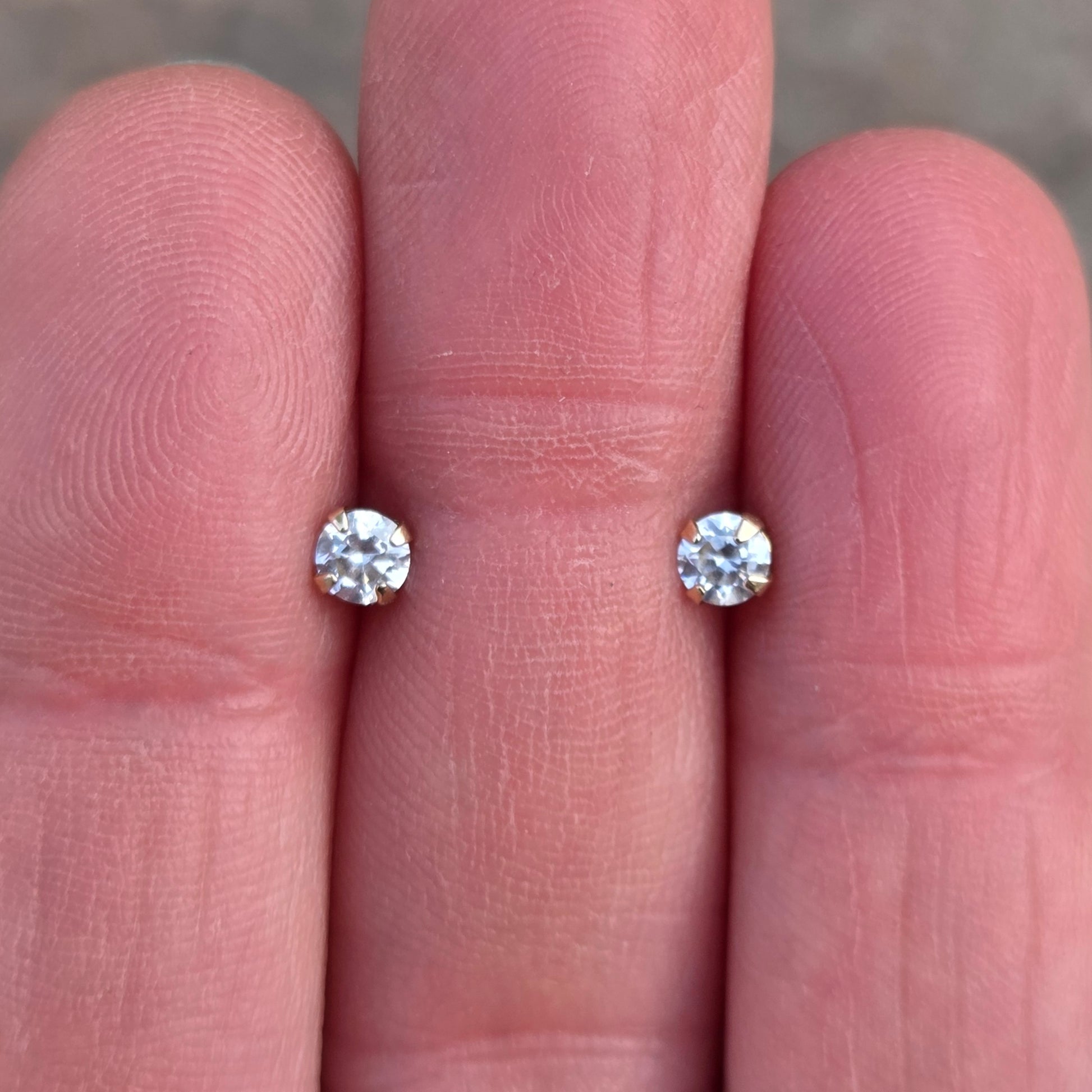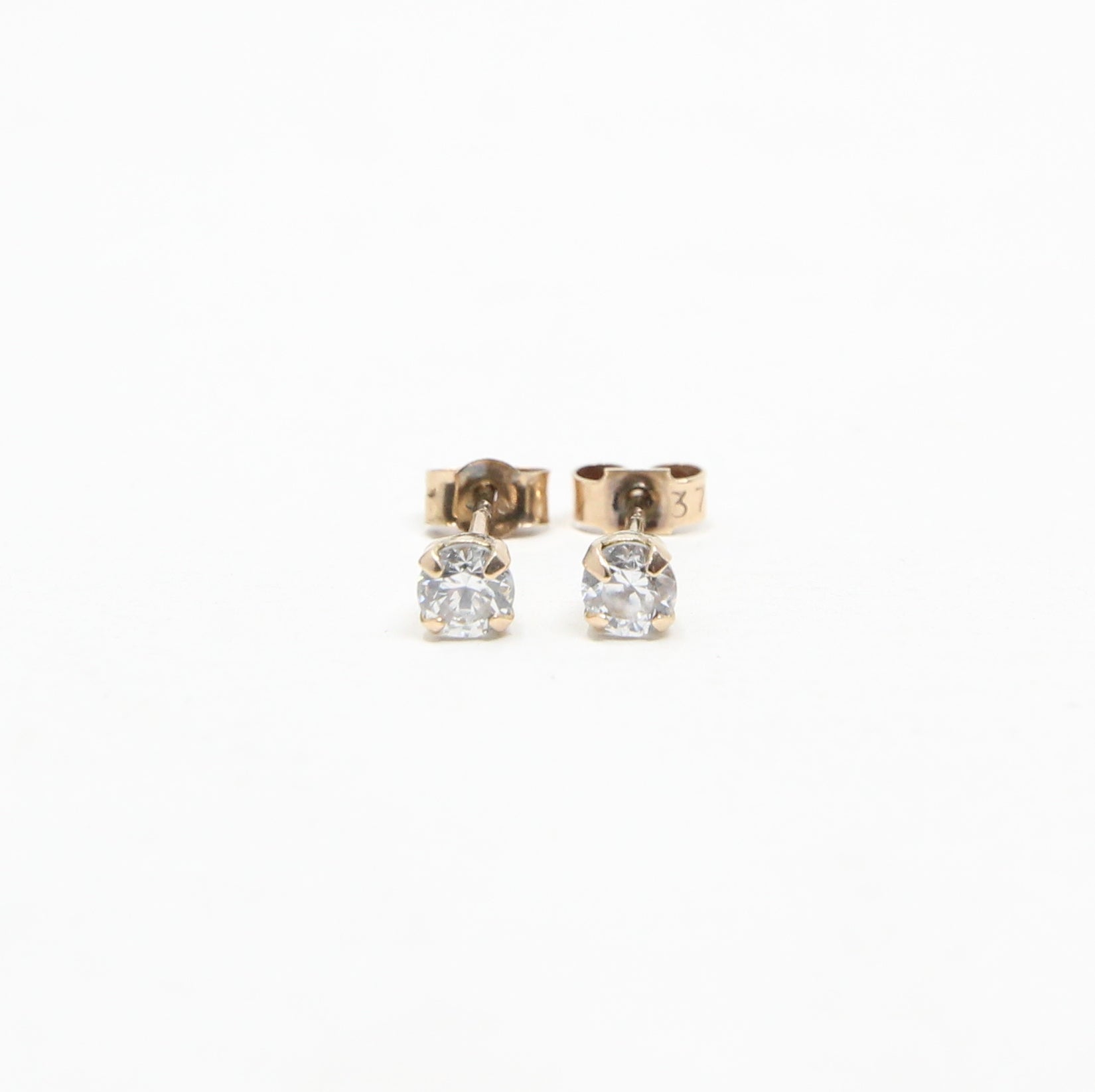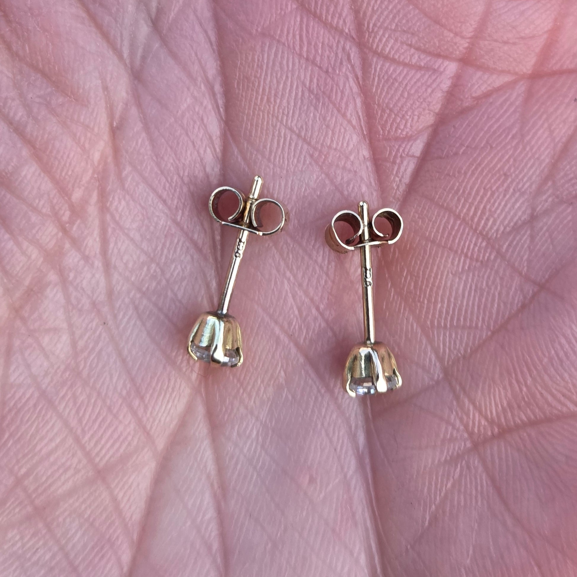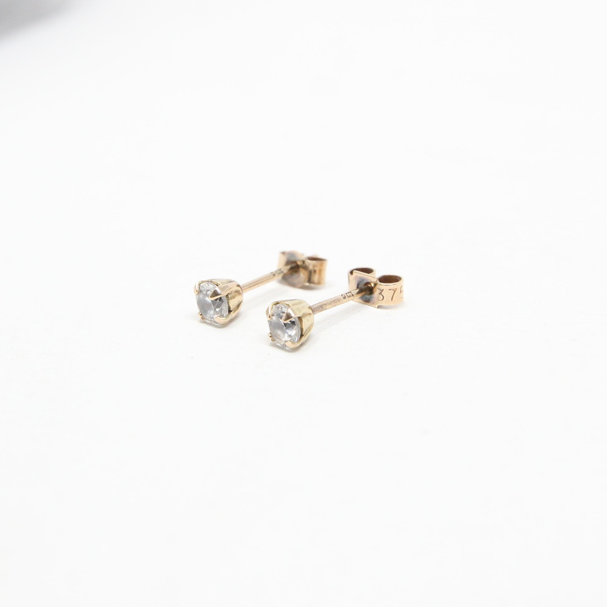 Vintage Hallmarked Solid 9ct 9k Gold Glass Crystal Stud Earrings