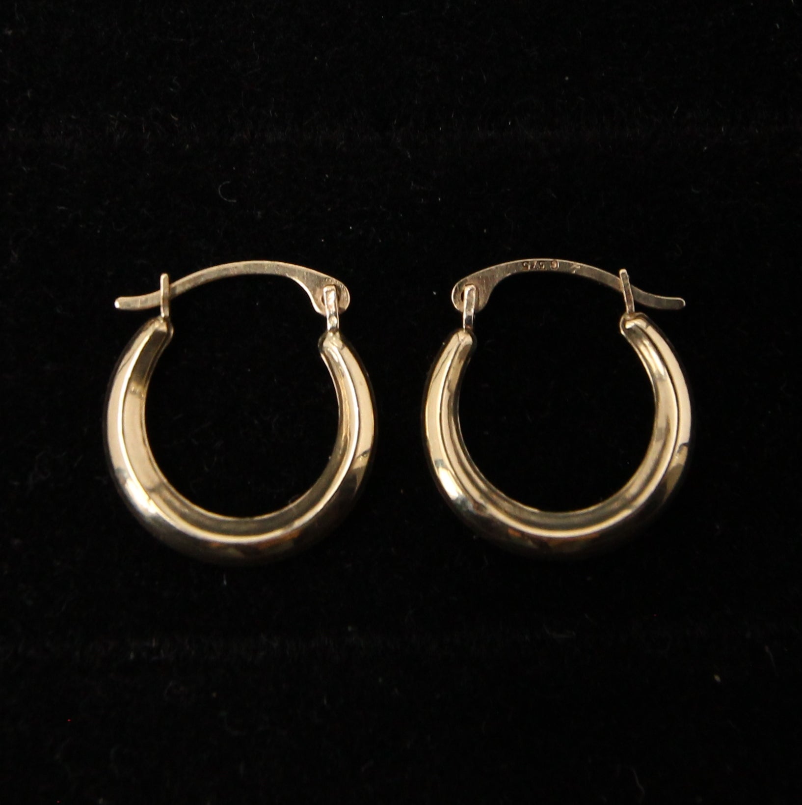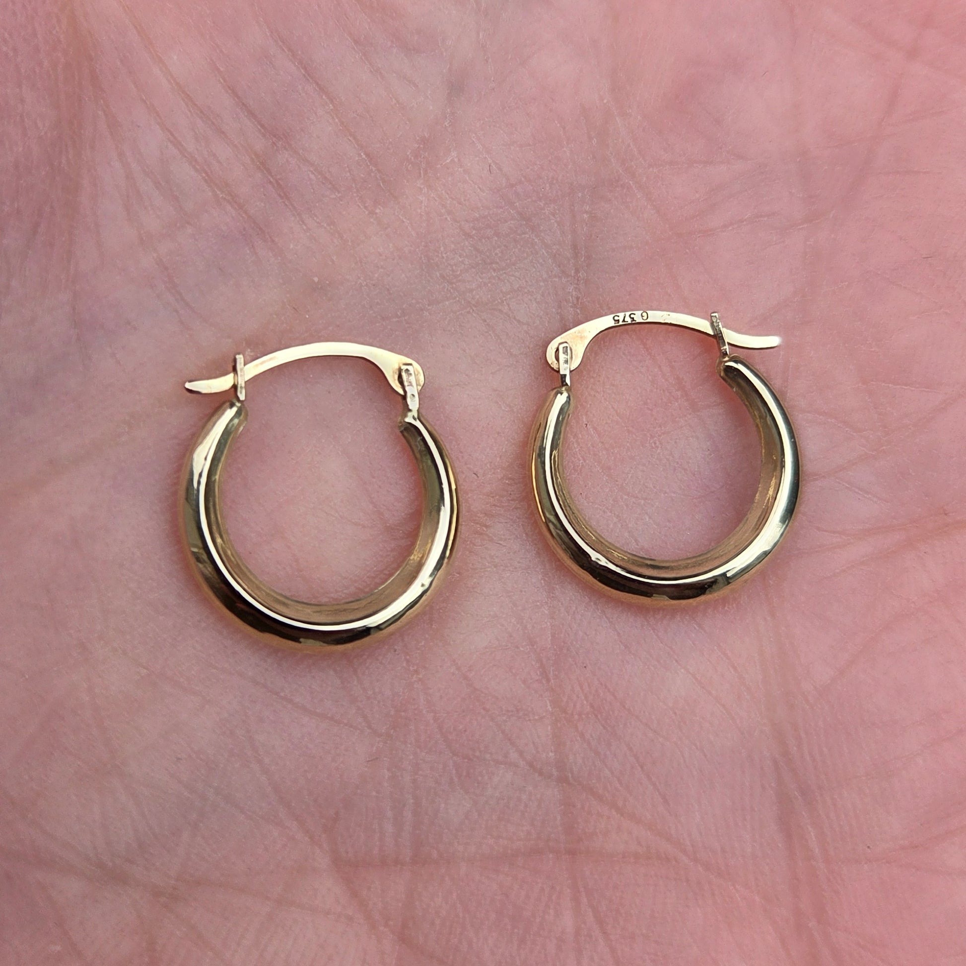 Vintage Hallmarked Solid 9ct 9k Gold Plain Hoop Earrings Hoops