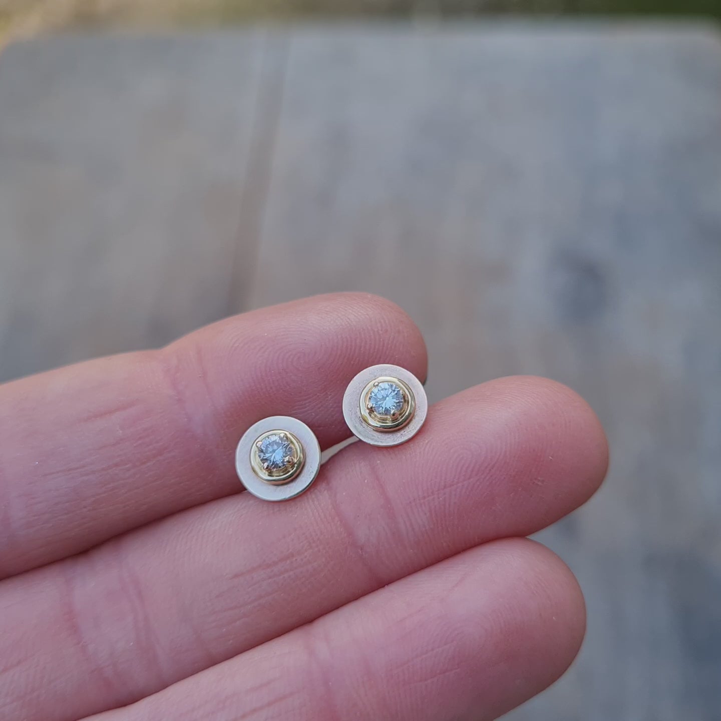 Vintage hand made solid 18ct gold 0.20Ct diamond stud earrings.