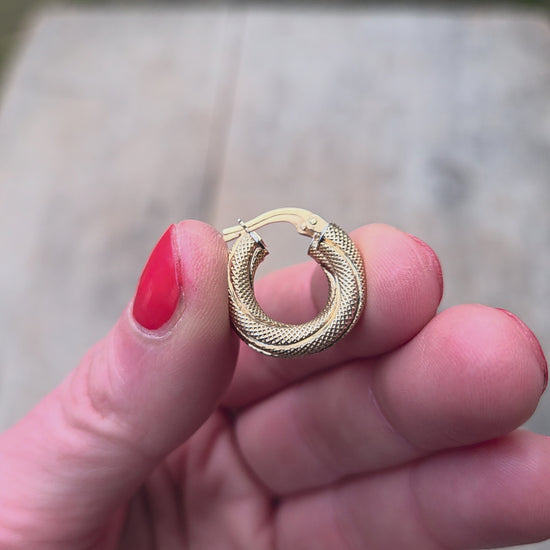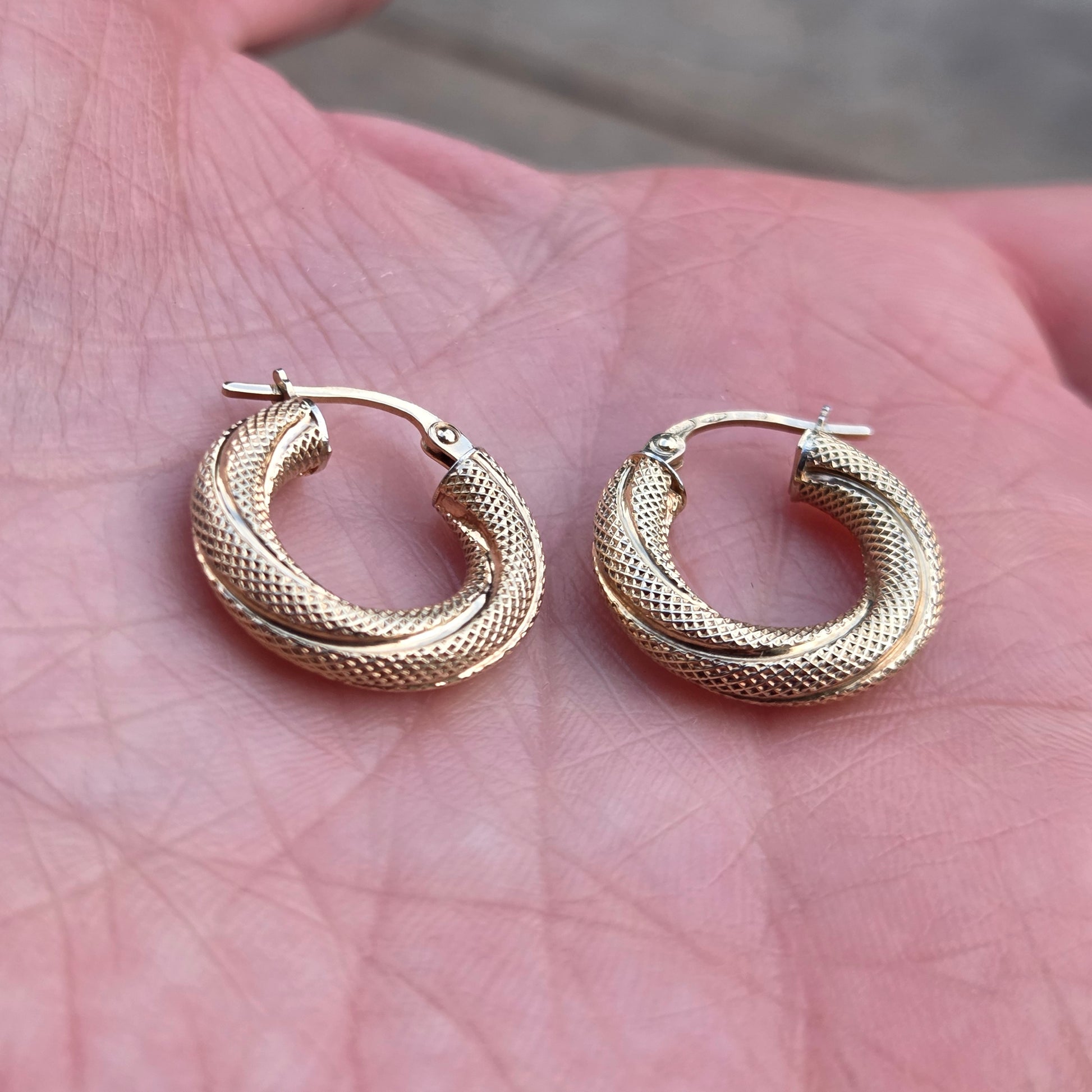 Vintage Unoaerre hallmarked solid 9ct gold chunky twisted hoop earrings.