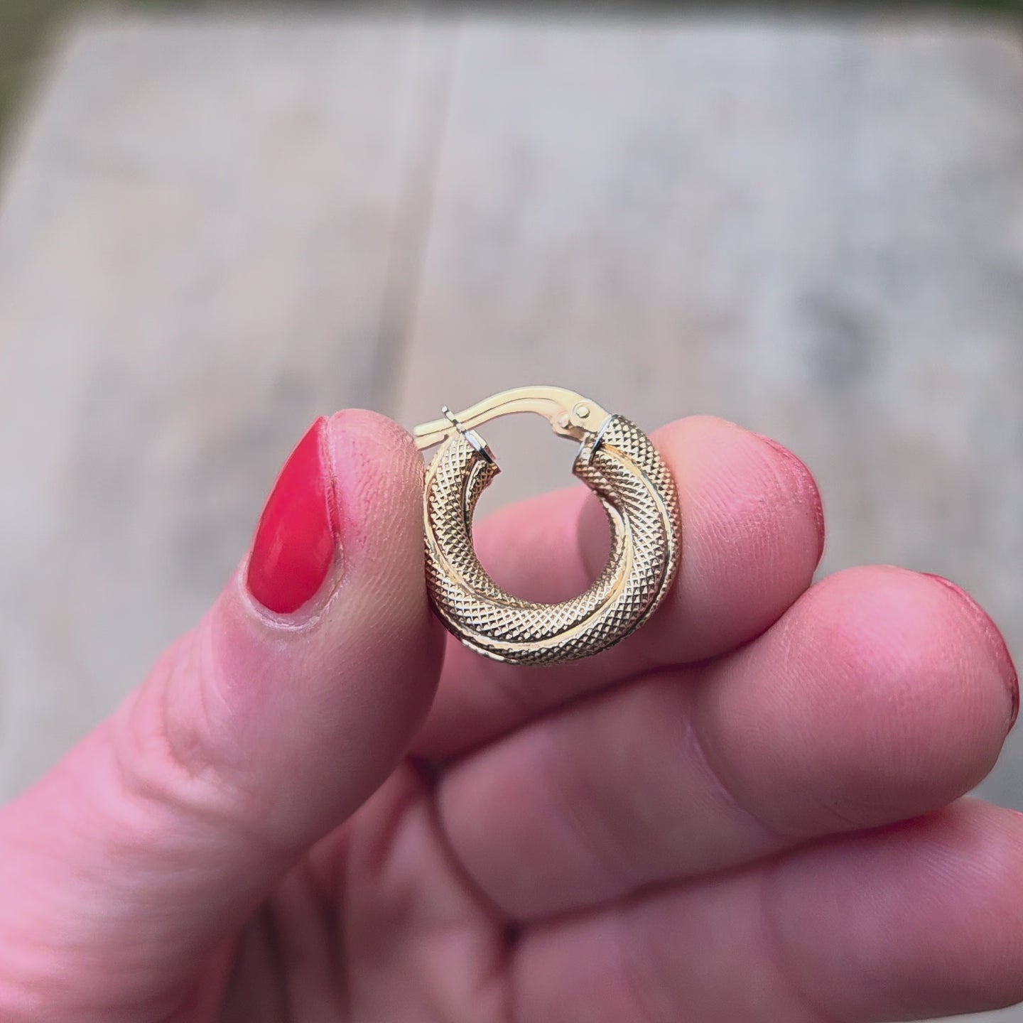 Vintage Unoaerre Hallmarked Solid 9ct 9k Gold Honeycomb Chunky Hoop Earrings Hoops
